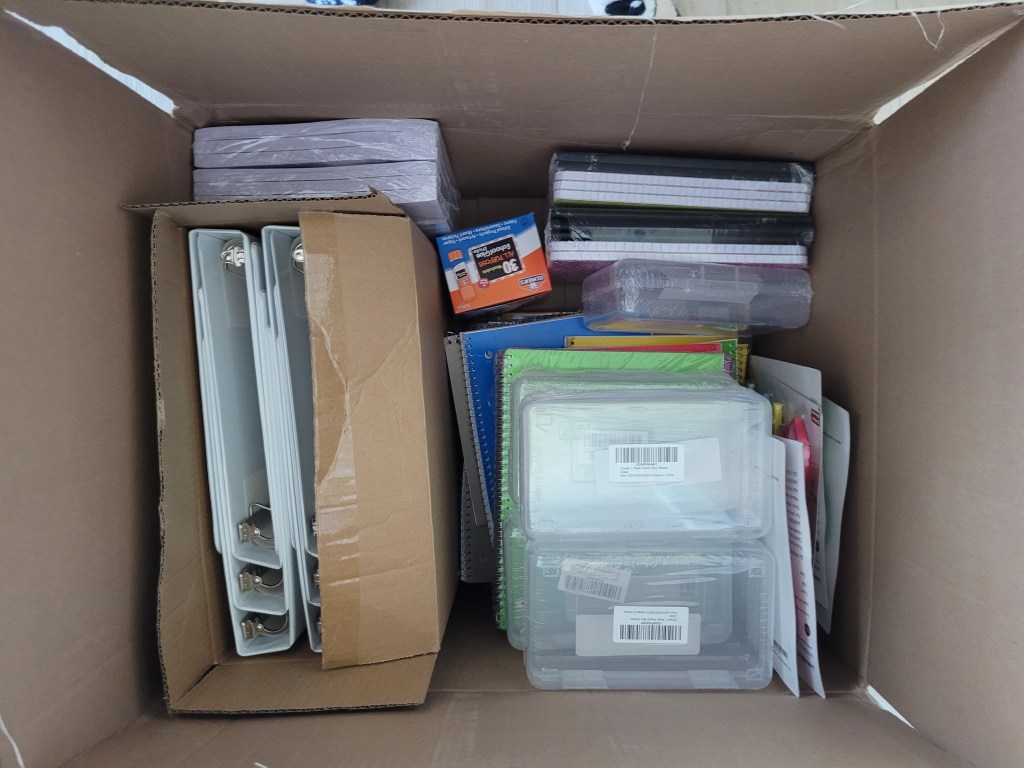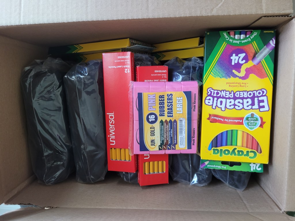 Supported a local Catholic Church providing school supplies (for at least five students) to five different local schools! I have the Christmas tune of “Oh What Fun It Is”…To Give 😊 a warm fuzzy feeling Posted bybarbreevesJuly 24, 2025Posted inUncategorized SCHOOL SUPPLIES THREEDownload Share this: Share on X (Opens in new window) X Share on Facebook (Opens in new window) Facebook Like Loading... Related